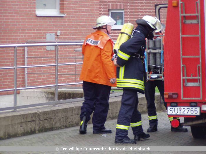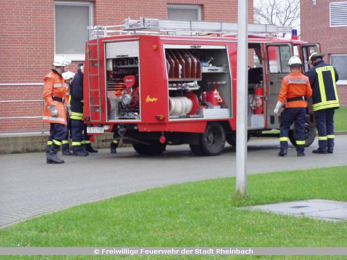 Am Samstagmorgen wird über die Leitstelle des Erftverbandes ein Brand im Betriebsgebäude für die Elektroanlage gemeldet. Ein Steuerschrank ist in Brand geraten, und 3 Personen werden vermisst. Die Leitstelle des RSK alarmiert die Züge III und IV der Freiwilligen Feuerwehr Rheinbach.