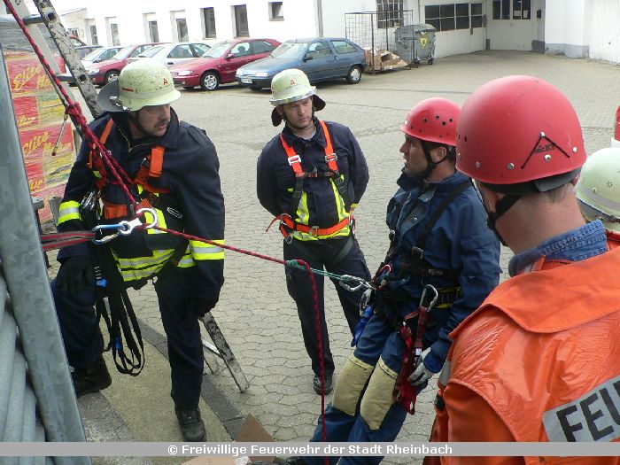 Am 6. und 13. Mai 2006 nahmen vier Kameraden der Feuerwehr Rheinbach und sechs Kameraden der Feuerwehr Meckenheim an einem Lehrgang zur Absturzsicherung teil.