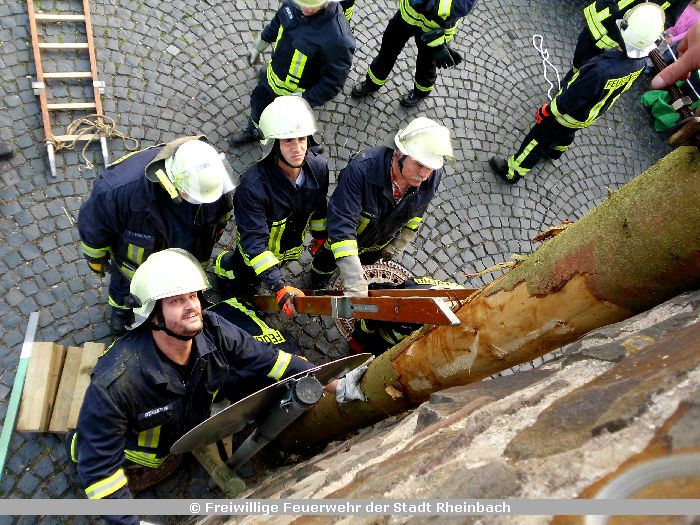 Am 30. April 2014 stellte der Löschzug Rheinbach den Maibaum auf dem Prümer Wall in Rheinbach auf.