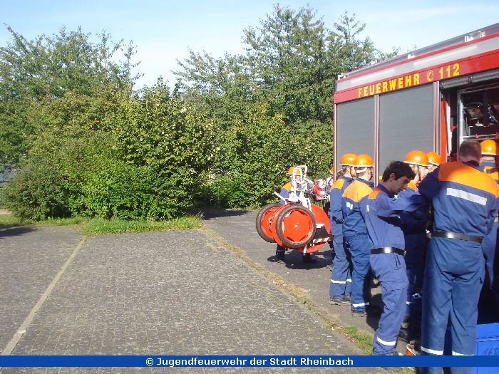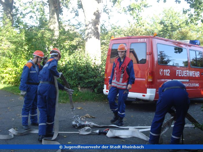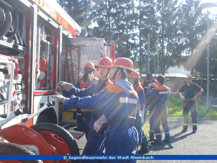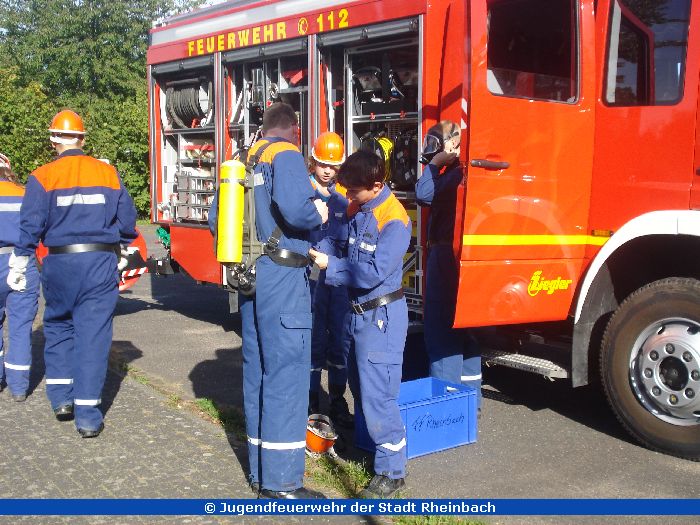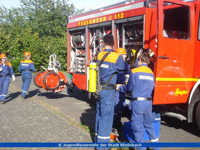 Bei herrlichstem Wetter fand der 3. Berufsfeuerwehrtag im Stadtgebiet Rheinbach statt. Dort musste eine Ölspur gefunden und abgestreut werden, hier war eine Person hinter der Tür und musste befreit werden. Auch Brandeinsätze wurden simuliert.