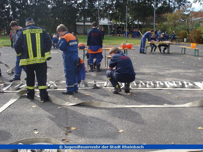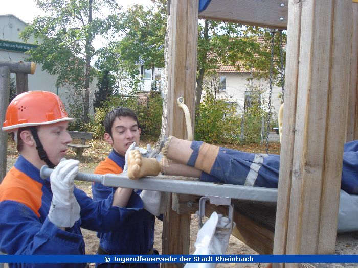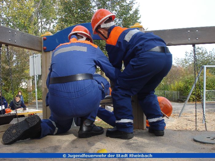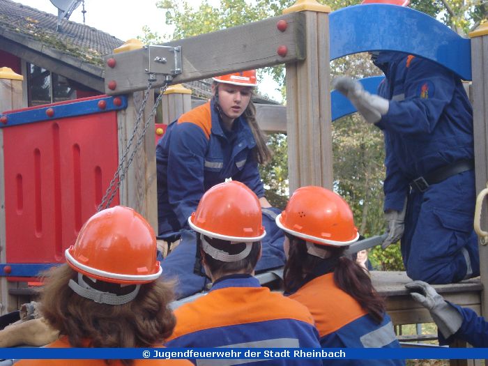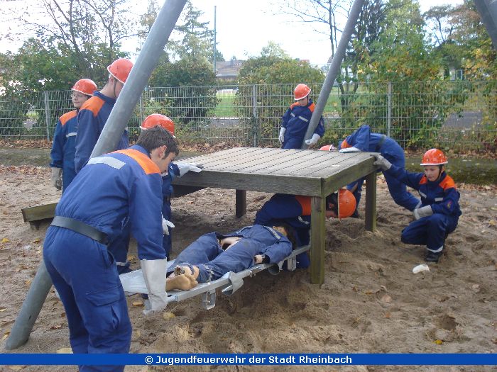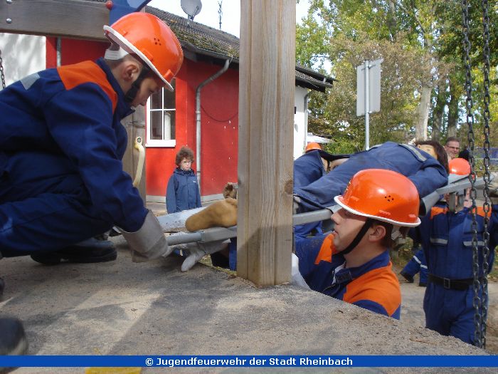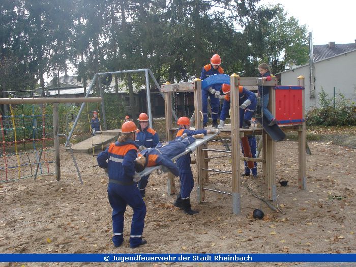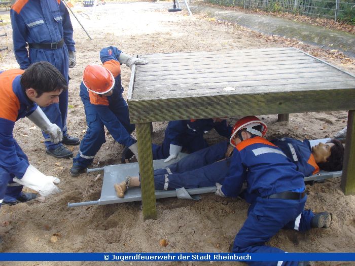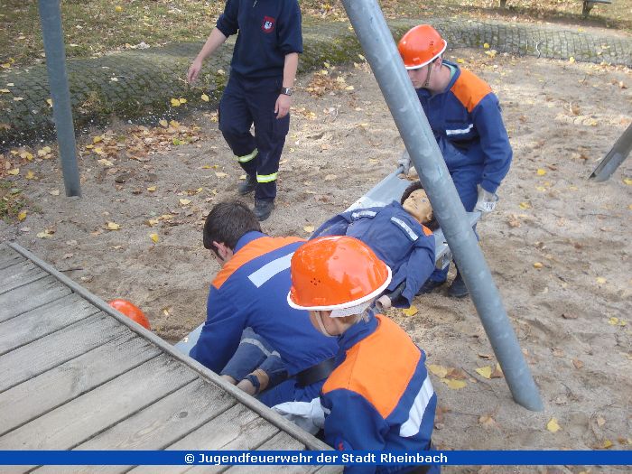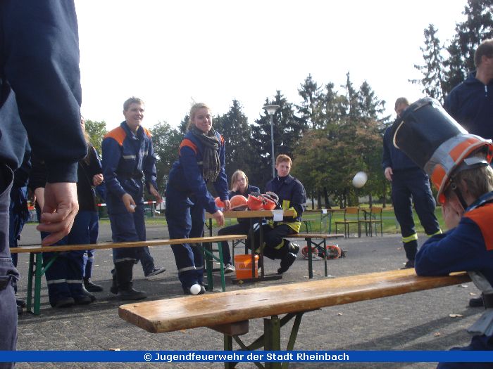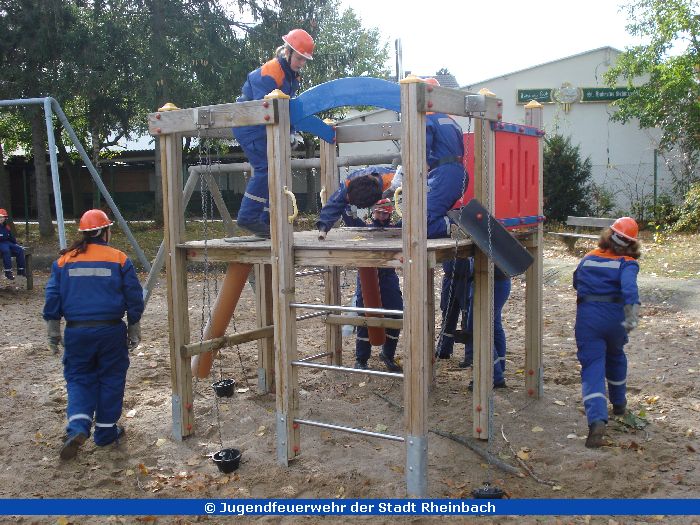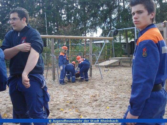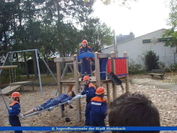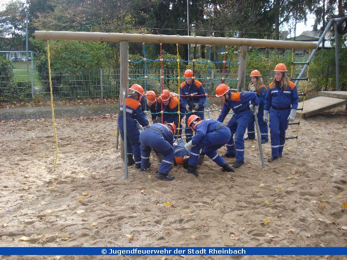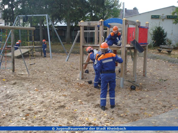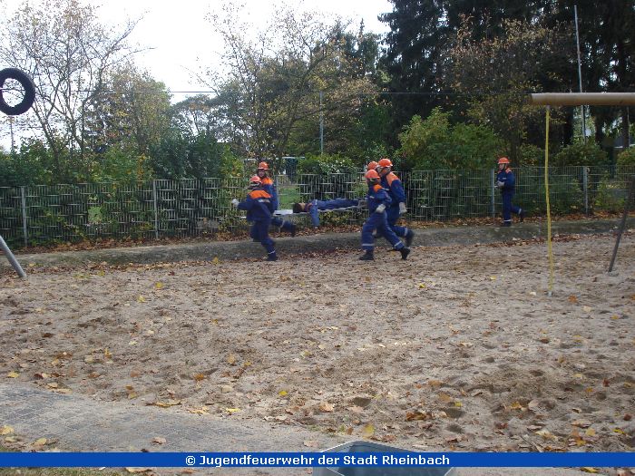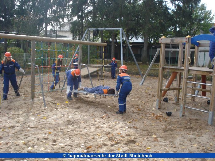 Dieses Jahr fand das Spiel ohne Grenzen zum letzen Mal als eigenständiger Wettkampf rund um das Gerätehaus in Wormersdorf statt. So musste zum Beispiel ein Hindernisparcours mit einer Krankentrage auf dem Spielplatz überwunden oder ein großes Feuerwehrbild aus Schläuchen gelegt werden.