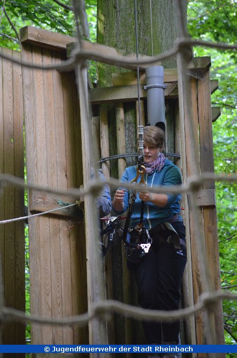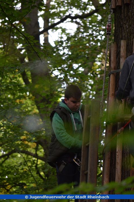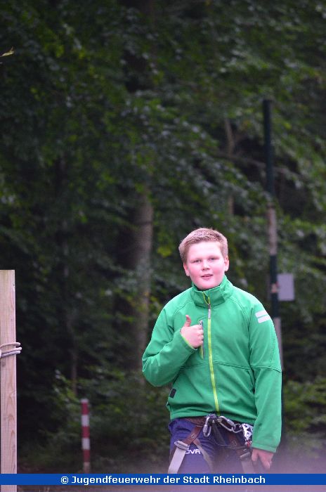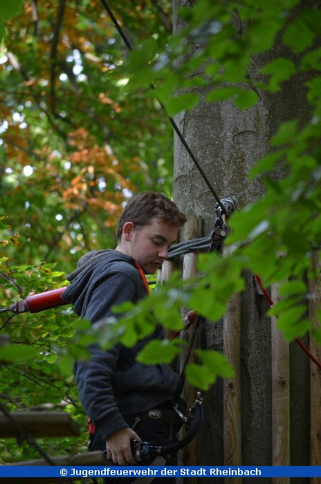 Am vergangenen Samstag, dem 26. September 2015 fuhr die Jugendfeuerwehr der Innenstadt mit zwei MTFs zum Kletterwald nach Ahrweiler. Nach der Anmeldung und einer kleinen Stärkung ging es dann um 10:30 Uhr mit der Einweisung in die Klettergerätschaften los. Neben zwei Karabinern, wovon einer immer nur mit einem "Schlüssel" geöffnet werden konnte, welcher am Start der Aktion immer zu finden war, gab es noch eine sogenannte "Rolle" und eine Notpfeife, falls man in Not gerät oder es Probleme in der Höhe gibt.