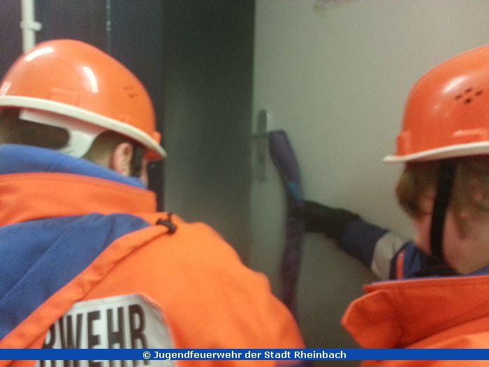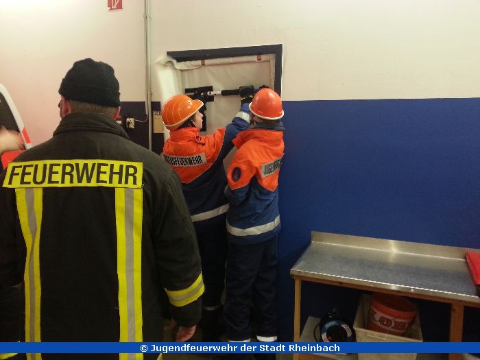 Themenunterricht drei, beinhaltete das Öffnen von Türen, das Vorgehen am Strahlrohr und eine Kurzwiederholung zum Thema "Funk".