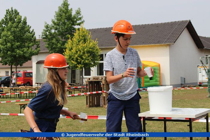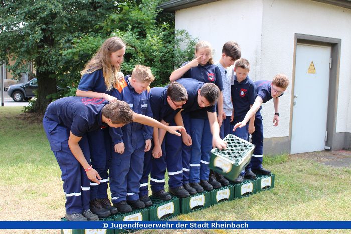 Angetreten waren alle Jugendgruppen aus dem gesamten Rheinbacher Stadtgebiet. In vier Spielen traten die Floriansjünger gegeneinander an. Auch die Jugendbetreuer und der JGV Ramershoven absolvierten die Spiele. So galt es zum Beispiel Flaschen mit den Füßen weiterzugeben oder einen Hindernisparcours mit Wasserbechern zu überwinden.