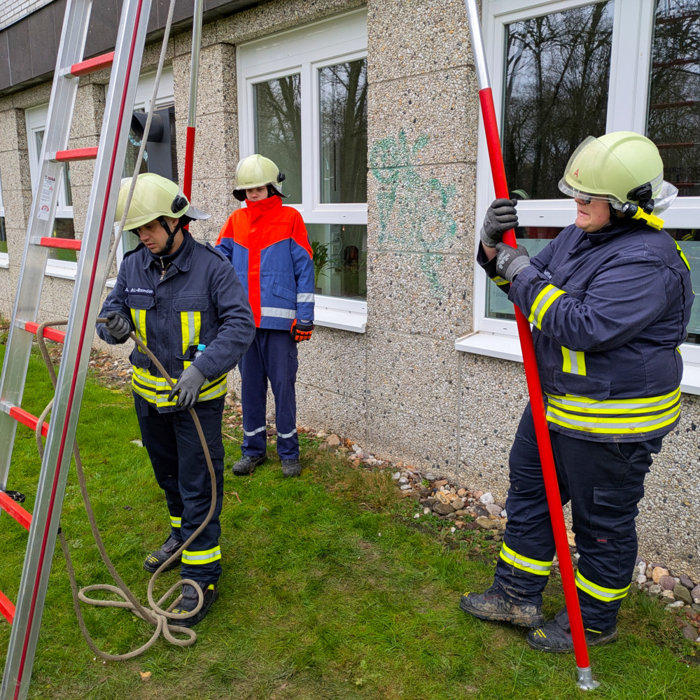 Themen dieses Teils der Grundausbildung waren Leitern, Rettungsgeräte sowie Fahrzeug- und Gerätekunde.